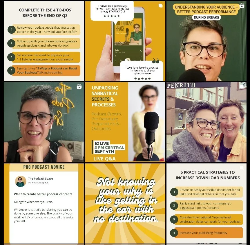 Share tips, how-tos, educational snippets, and carousels related to your podcast’s theme. Doing so establishes you as an authority in your field and offers immediate value to your followers.